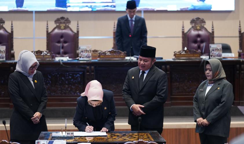 Rapat Paripurna LXIII (63) DPRD Prov. Sumsel dengan agenda penyampaian rekomendasi DPRD Prov. Sumsel kepada Gubernur Sumsel terhadap LKPJ Gubernur Sumsel Tahun Anggaran (TA) 2022 yang dipimpin oleh Ketua DPRD Prov. Sumsel; Hj. R.A. Anita Noeringhati, SH, MH, bersama Wakil Ketua DPRD Prov. Sumsel; Hj. Kartika Sandra Desi, SH, MM dan H. Muchendi Mahzareki, SE, di hadiri oleh Gubernur Sumsel; H. Herman Deru, dan Para perwakilan Organisasi Perangkat Daerah (OPD) serta Tamu Undangan lainnya.