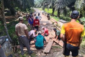 Personel Polsek Maje Gotong Royong Perbaiki Jembatan di Desa Sinarmulya
