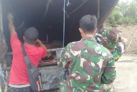 Anggota TMMD Ke-111 Bantu Mekanik Perbaiki Alat Yang Sedang Macet