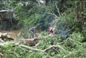 Satgas TMMD dan Warga Gotong Royong Tebang Pohon