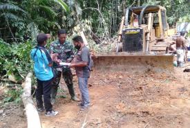Satgas TMMD Ke-111 Kodim 1013/Mtw Memantau Hutan Untuk Pembukaan Lahan Jalan.