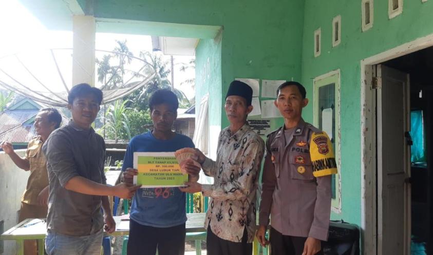Bengkulu Selatan, - Bhabinkamtibmas Polsek Pino Polres Bengkulu Selatan Polda Bengkulu, Briptu Jiki Putra. K. S.H., melakukan monitoring pelaksanaan Penyaluran BLT DD tahun 2023 periode bulan Juli, Agustus dan September di Desa Lubuktapi Kecamatan Pino Kabupaten Bengkulu Selatan, Selasa (17/07/23).