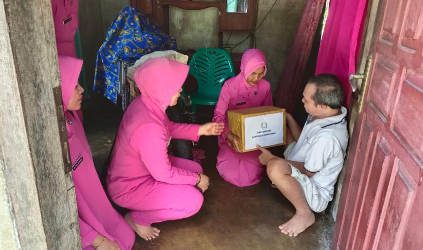 dan memberikan bantuan berupa sembako yang terdiri dari kue telur, mie instan, dan minyak goreng.