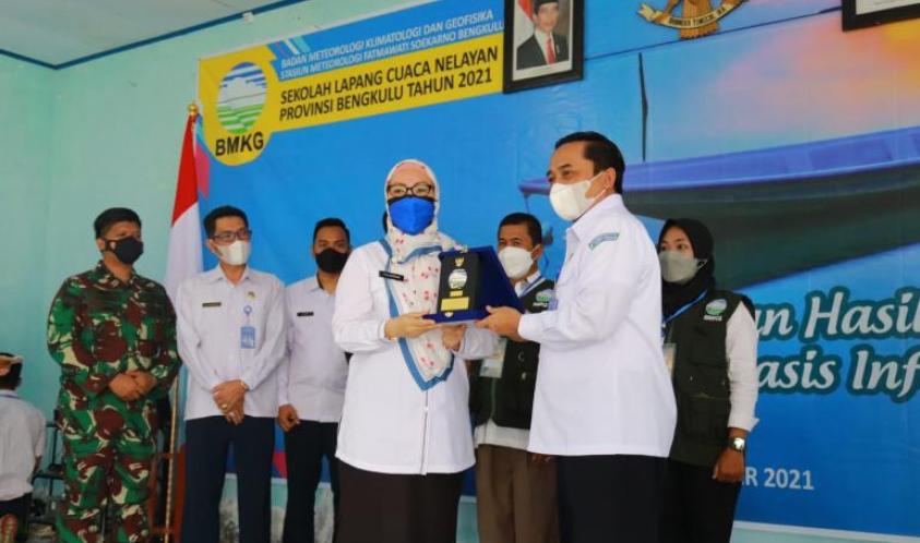 Bengkulu - Asisten II Setda Provinsi Bengkulu bidang Perekonomian dan Pembangunan, Yuliswani mewakili Gubernur membuka Sekolah Lapang Cuaca Nelayan (SLCN) 2021 Provinsi Bengkulu di Aula UPTD Pelabuhan Perikanan Prov. Bengkulu Kelurahan Sumber Jaya, Kec. Kampung Melayu Kota Bengkulu, Rabu (13/10).
