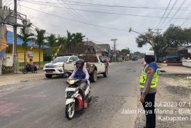 Kaur - Sat Lantas Polres Kaur Polda Bengkulu melaksanakan kegiatan pengaturan lalu lintas atau commander Wish, Kamis,