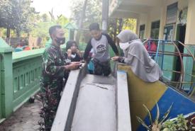 PATI - Serda Muslimin anggota satgas TMMD ke 111 Kodim 0718/Pati melakukan sosialisasi pencegahan penyebaran Covid 19
