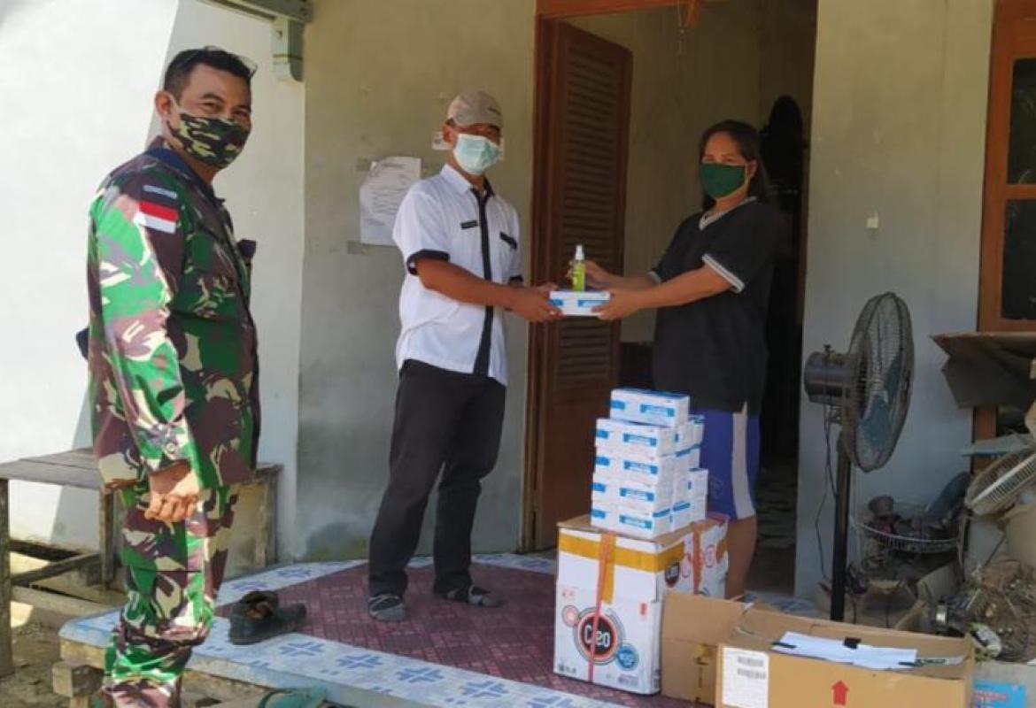 Koramil 1206 - 16/Seberuang dan Satgas Covid-19 Seberuang Bagikan Sarana Protkes
