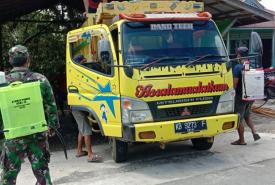 Babinsa semprot disinfektan kendaraan cegah COVID-19
