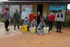 Putuskan Penyebaran Covid-19, Babinsa Koramil 1206 - 02/Semitau, Bersama Satgas PPKM Semprot Disinfektan