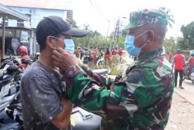 Sinergitas TNI-Polri Bagikan Masker Dan Himbau Protkes Di Desa Pala pulau