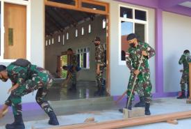 Koramil 1206 - 04/Badau Bersama Anggota Satgas RI - Malaysia Yonif 144/Jaya Yudha Bersihkan Gereja