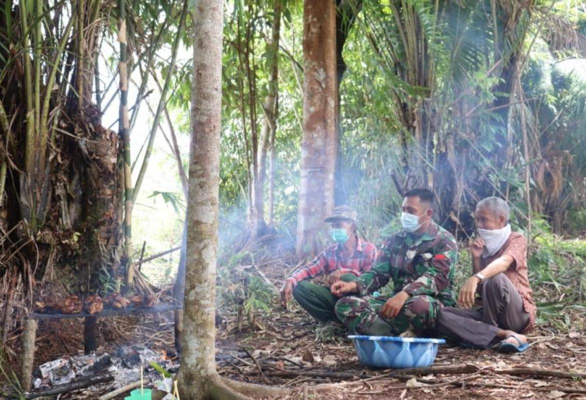 Ukit Ukit - Babinsa Koramil 1206-03/Batang Lupar Serka Oken bersama dengan Bhabinkamtibmas Brigadir Situmorang, melak