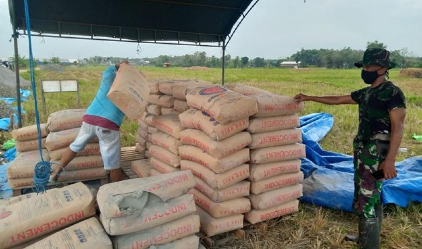 Sertu Solikhin (40) personil satgas TMMD mengatakan semen adalah material utama dalam pengecoran jalan yang menghubungkan desa Tamansari ke desa Sumberarum. Dengan pasokan semen yang cukup diharapkan pembangunannya dapat berjalan dengan lancar.