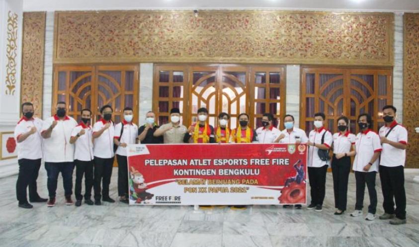 Bengkulu, Siberklik.com - Gubernur Bengkulu Rohidin Mersyah pimpinan Pelepasan Atlet E-Sports Free Fire (FF) Kontingen Bengkulu yang akan berlaga pada Pekan Olahraga Nasional (PON) XX Papua 2021 di Gedung Daerah Balai Raya Semarak Bengkulu, Rabu (15/09) malam.