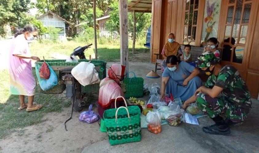 Terlihat, Antusias ibu-ibu masyarakat Desa Tamansari, Kecamatan Jaken ketika berbelanja bahan makanan sehari-hari di pedagang sayur keliling. Sambil memilih sayur dan lauk sambil berbincang-bincang membahas kegiatan TMMD yang ada di Desa Tamansari.