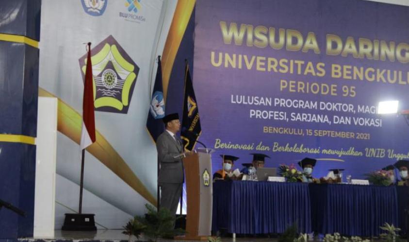 Bengkulu, Siberklik.com - Gubernur Bengkulu Rohidin Mersyah menghadiri Wisuda Daring Periode ke-95 Lulusan Pasca Sarjana, Profesi, Sarjana dan Vokasi Universitas Bengkulu, di Gedung Serbaguna Universitas Bengkulu, Rabu (15/9).