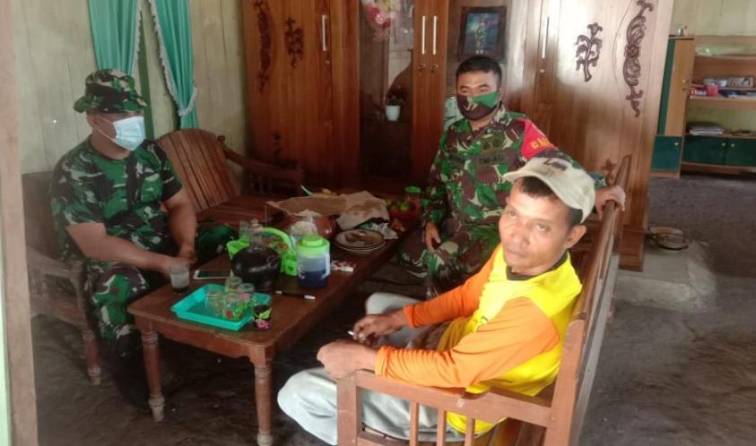 Tampak terlihat, Serda Andi dan Koptu Priyono sedang berkunjung ke rumah warga Darmo Wiyono (53), warga Dusun Kalimati, Desa Tamansari, Kecamatan Jaken.