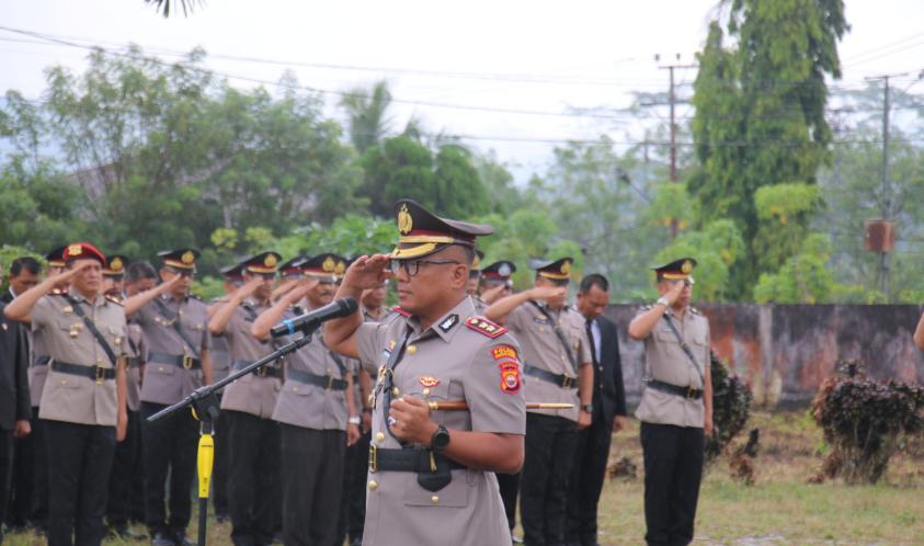 Bertindak selaku Perwira Upacara yakni Kasat Samapta IPTU Hasan Basri S,H dan Komandan Upacara IPDA Ferizan Ahmad, SH.
