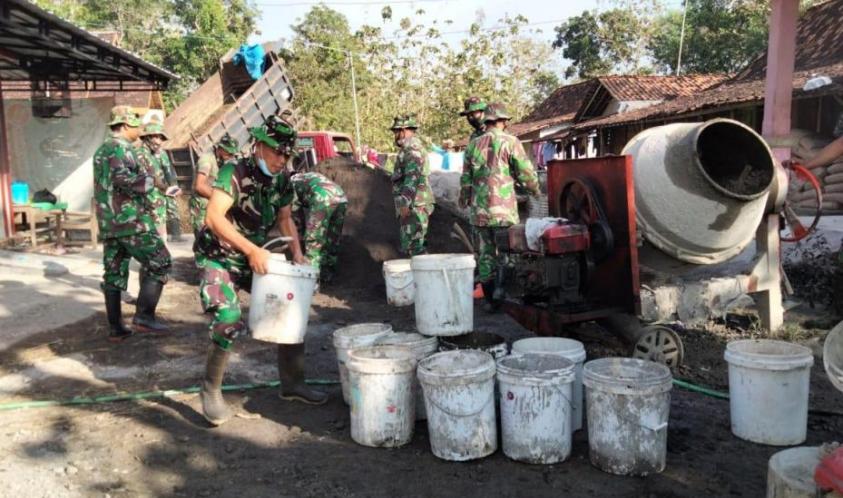 Pati - Dalam pelaksanaan program kegiatan TNI Manunggal Membangun Desa (TMMD) Reguler Ke-111 Kodim 0718/Pati, yang lepas dari penglihatan kita dalam sasaran fisik pengerjaan rabat beton adalah kerjasama tim mesin molen antara operator dan bagian angkut material. Angkut material sangat dibutuhkan tenaga kuat, kekompakan dan kecepatan.