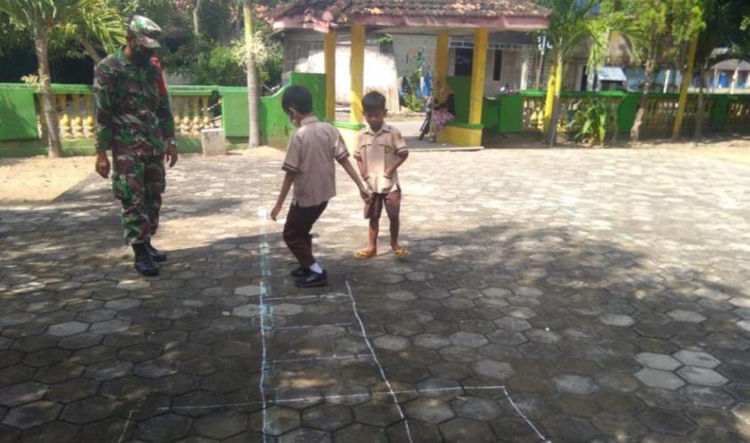 Di masa pandemi seperti sekarang ini, anak-anak lebih sering berada dirumah karena sekolah diliburkan, oleh karena itu para orang tua harus mengisi dengan kegiatan yang berguna untuk perkembangan fisik dan psikis anak. Seperti yang terlihat menjelang berakhirnya pelaksanaan TMMD Reguler Ke-111 Kodim 0718/Pati salah satu personel satgas TMMD sedang bermain bersama dua orang anak sekolah Fadhil dan Zaky yang selesai mengambil raport di sekolahnya.