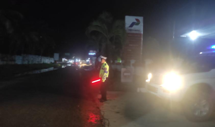 Kaur - Pastikan keamanan, keselamatan, ketertiban dan kelancaran lalu lintas (Kamseltibcarlantas) Polres Kaur Polda Bengkulu melaksanakan Patroli Blue Light, dan memantau Arus lalu lintas di jalan raya lintas Sumatera Kota Bintuhan, Kamis(20/07/2023).