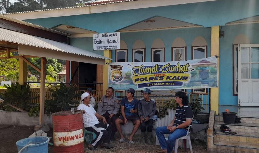Dalam Kegiatan tersebut personel Aiptu Leza Herianto mewakili Kapolsek Maje Iptu Ferdiansyah, S.H., Jumat Curhat ini adalah program dari pimpinan pusat guna untuk mendengarkan aspirasi atau curhatan/aduan masyarakat untuk meningkatkan komunikasi dan silaturahmi dan mendengar masukan, saran masyarakat langsung, yang menyangkut Harkamtibmas di wilkum Polsek Maje polres Kaur.