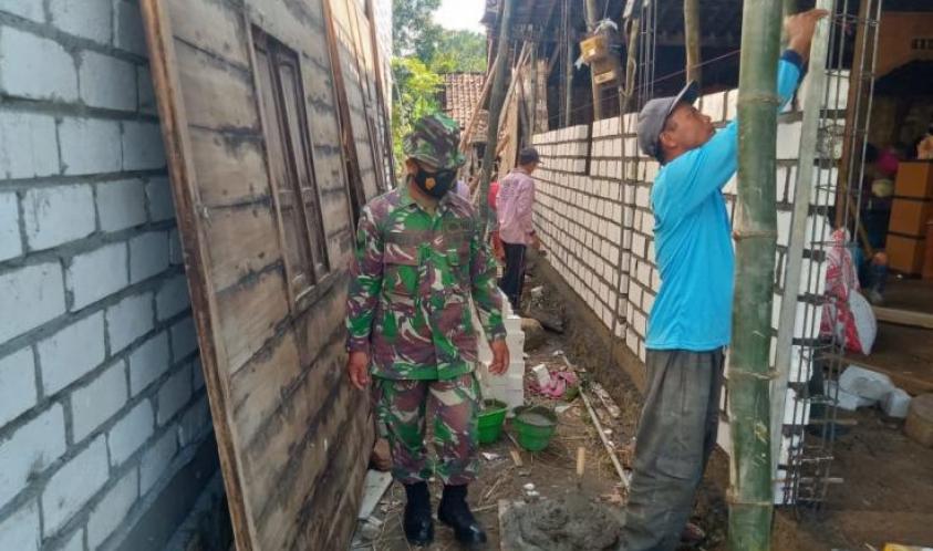 PATI - Selain pembangunan fisik berupa peningkatan jalan, Satgas TMMD ke-111 Kodim 0718/Pati, bersama warga masyarakat juga membedah RTLH (Rumah Tidak Layak Huni) di Desa Tamansari, Kacamatan Jaken, Kabupaten Pati, Senin (07/06/2021).