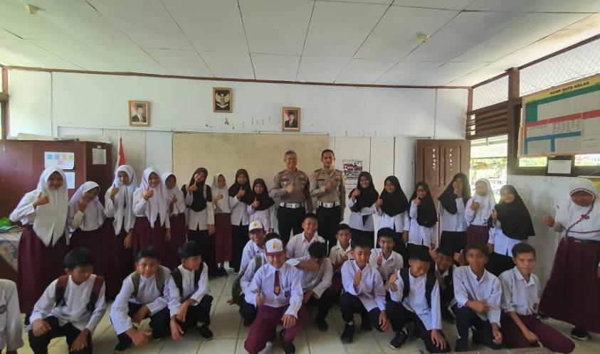 Mukomuko - Sat Lantas Polres Mukomuko Sosialisasikan tertib berlalu lintas kepada Pelajar SDN 02 XIV Koto.