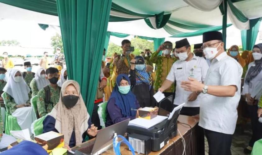 Bengkulu, Siberklikcom - Gubernur Bengkulu Rohidin Mersyah meninjau pelaksanaan vaksinasi COVID-19 bagi pelajar yang digelar di Madrasah Aliyah Negeri (MAN) 2 Kota Bengkulu, Rabu (8/9/21).