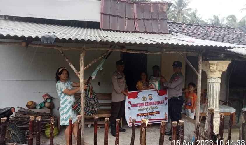 Kaur - Polsek Maje Polres Kaur Polda Bengkulu kembali menyalurkan bantuan sosial kepada warga kurang mampu dan atau yang membutuhkan, Minggu (16/4/2023).