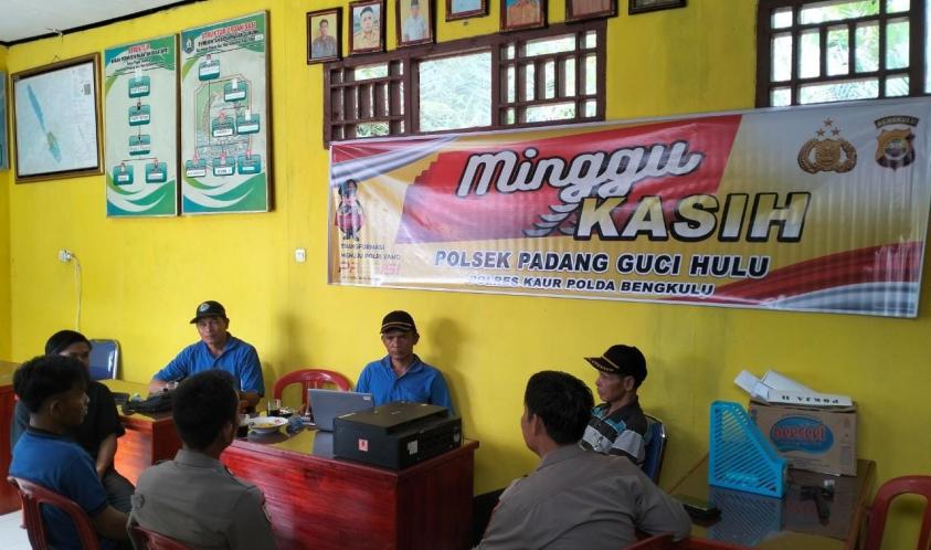 Kaur - Polsek Padang Guci Hulu Polres Kaur Polda Bengkulu, melaksanakan kegiatan Minggu Kasih di Desa Pagar Gunung Kecamatan Padang Guci Hulu Kabupaten Kaur, Minggu (08/10/2023).