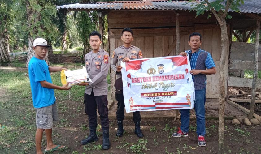 Kaur - Polsek Tanjung Kemuning Polres Kaur Polda Bengkulu kembali menyalurkan bantuan sosial kepada warga kurang mampu dan atau yang membutuhkan, Kamis (6/4/2023).
