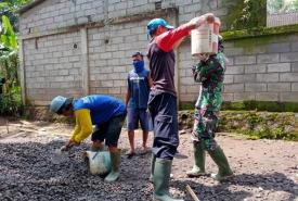 Semangat Warga Bersama Babinsa Ketapang Melaksanakan Pengecoran Jalan