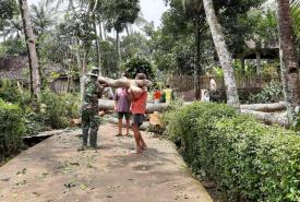 ANGGOTA SATGAS TMMD REGULER 110 TANGGAP DAN TRENGGINAS" MEMBANTU WARGA MEMOTONG POHON