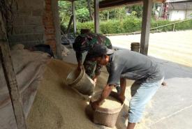 Satgas TMMD Bantu Warga Memindahkan Gabah Kering