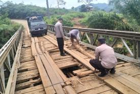 Seluma - Kanit Patroli dan Kanit Binmas beserta personil Polsek Talo melakukan perbaikan jalur jembatan bersama Warga