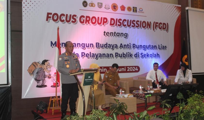 Bengkulu - UPP Saber Pungli UPP Provinsi Bengkulu, Senin (10/06/2024) menggelar Focus Group Discussion (FGD) bertempat di ballroom hotel Santika Bengkulu. FGD kali ini mengambil tema "Membangun Budaya Anti Pungutan Liar pada Pelayanan Publik di Sekolah". Beberapa Narasumber dihadirkan diantaranya Dir Binmas Polda Bengkulu, yang mewakili Diknas, Inspektorat maupun dari sisi hukum perwakilan Subdit Tipikor Polda Bengkulu.