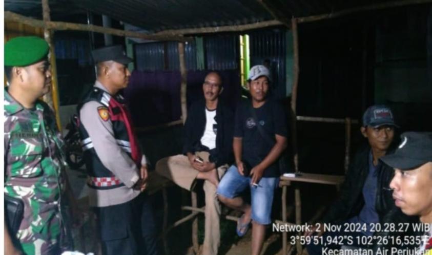 Personil Polsek Sukaraja bersama Personil Koramil 0425-03 Air Periukan melaksanakan giat Patroli Gabungan dalam rangka Sinergitas TNI-POLRI memelihara situasi kamtibmas yang Kondisif di Wilayah Hukum Polsek Sukaraja dan Koramil 0425-03 Air Periukan Minggu (03/11/2024).