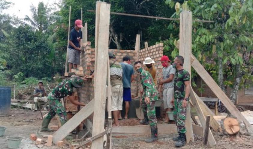 WAY KANAN – Satuan Tugas (Satgas) Kodim 0427/Way Kanan dan warga bekerja bersama melanjutkan pembangunan poskamling di lokasi Kampung Negeri Batin Kecamatan Umpu Semenguk Kabupaten Way Kanan yang pembangunannya telah memasuki hari ke-4 program Kodim 0427/Way Kanan. Jumat (18/6/2021)