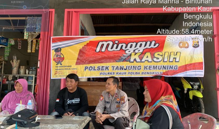 Kapolres Kaur AKBP Eko Budiman melalui Kapolsek Tanjung Kemuning Iptu Guslin Saswondo, mengatakan kegiatan Minggu Kasih ini selain memberikan Imbauan, juga sebagai upaya Polri untuk mendapatkan informasi terkait Kamtibmas di wilayah Polsek Tanjung Kemuning.
