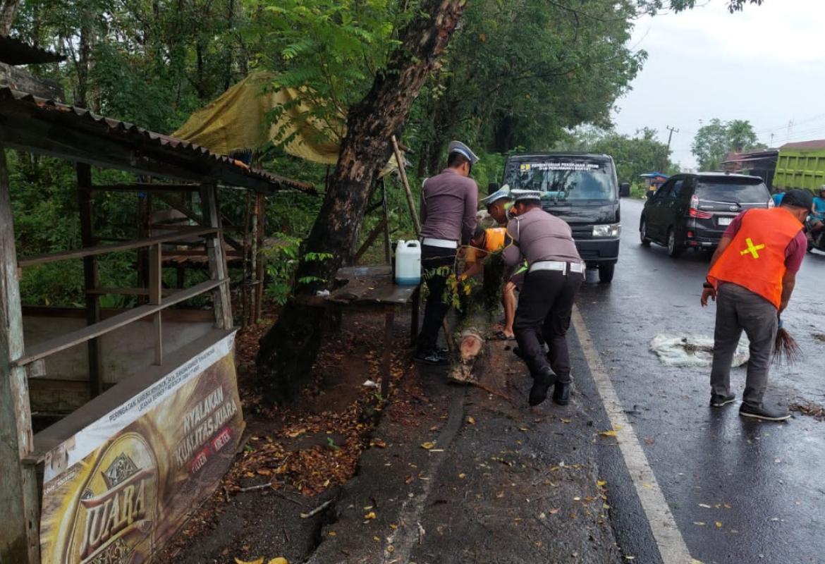 Pastikan Arus Lalin Berjalan Lancar, Polsek Taba Penanjung Evakuasi Pohon Tumbang di Desa Sukarami