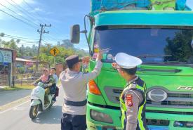 Polres Kaur Berikan Imbauan Tertib Lalu Lintas dan Pasang Stiker Layanan 110 di Pos Pelayanan Pantai Linau