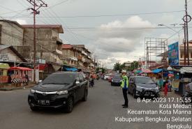 Sat Lantas Polres Bengkulu Selatan Pamtur Lalin Pastikan Pasar Kaget Tidak Menggangu Kelancaran Lalu Lintas