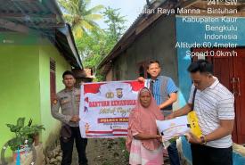 Kaur - Polsek Tanjung Kemuning, Polres Kaur Polda Bengkulu kembali menyalurkan bantuan sosial kepada warga kurang mam