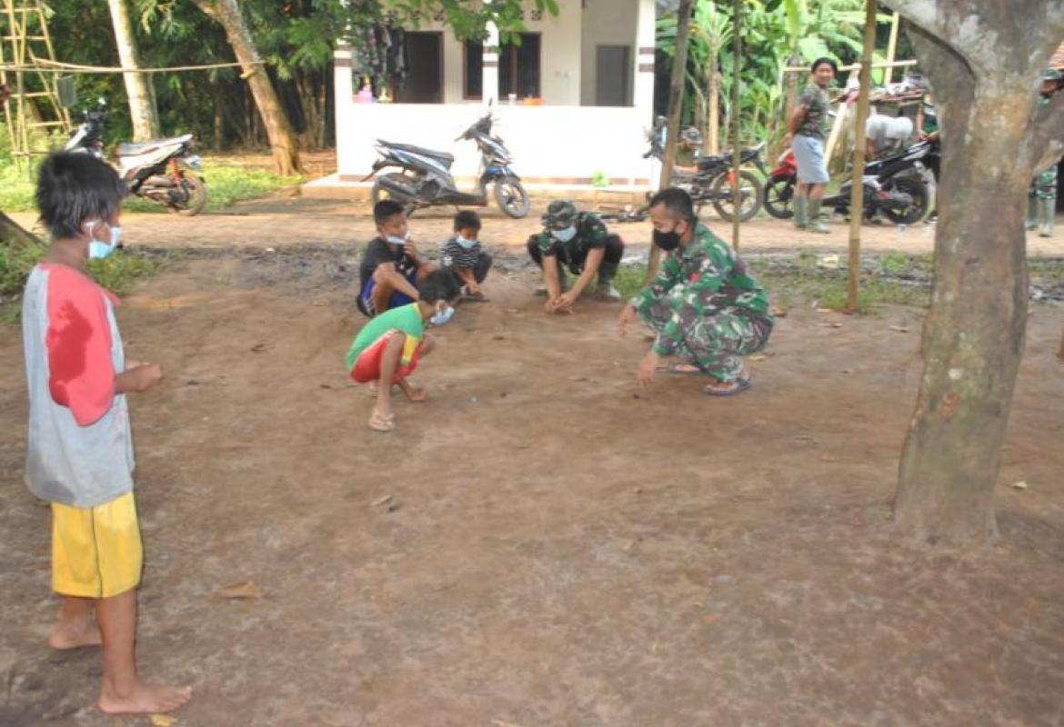 Satgas TMMD Ajak Anak -Anak Bermain Kelereng