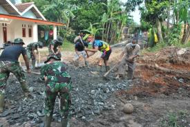 TANGERANG-Satgas TMMD Reguler 111 Kodim 0510/Trs, bersama warga Desa Jambe, kembali bergotong-royong.