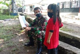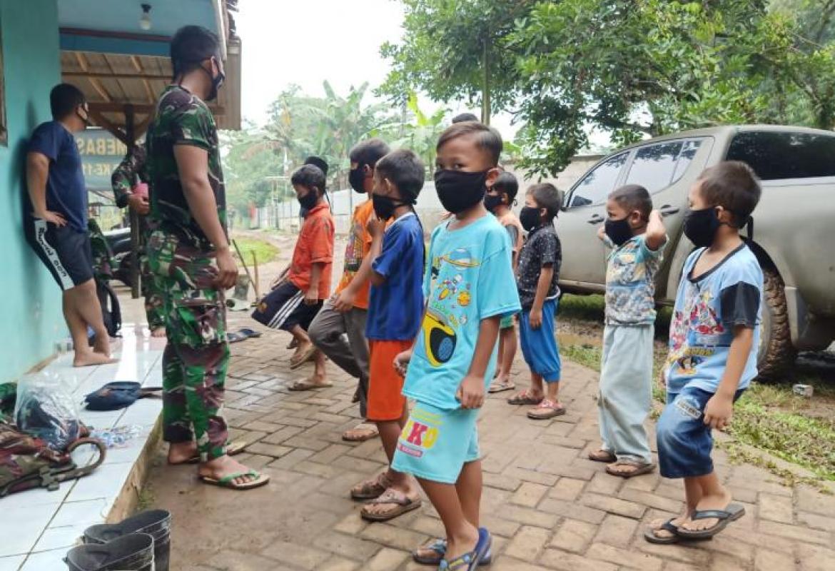 Dansatgas TMMD Ke-111 Tanamkan Taat Prokes Sejak Dini Kepada Anak-Anak di Jambe
