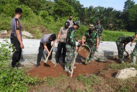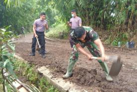 TANGERANG-Bersama anggota TNI dan Polri warga Desa Jambe Satgas TMMD Reguler Ke-111 Kodim 0510/Trs terus kebut sasa