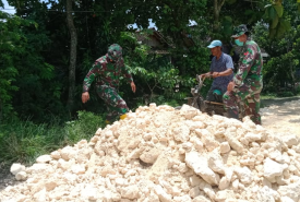 Bojonegoro - Anggota satgas TNI Manunggal Membangun Desa (TMMD) ke 110 membantu merapik
