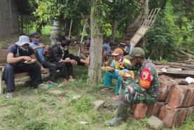 Anggota Satgas TMMD Bojonegoro Komsos Dan Berikan Edukasi Belajar Daring Anak Jatimulyo